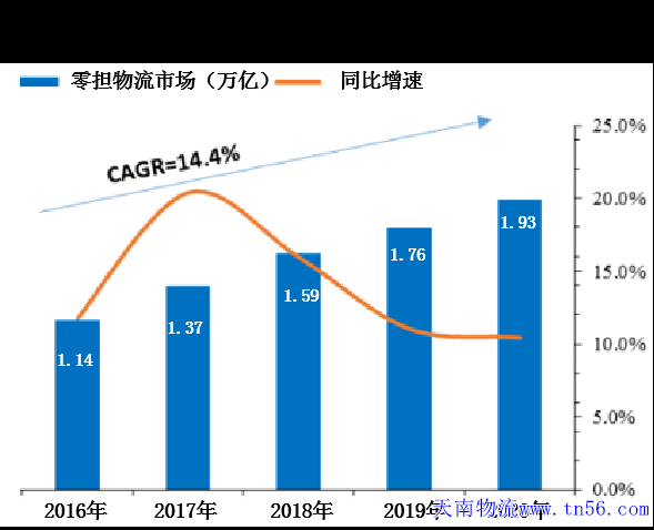 專家預(yù)測,到2020年,零擔(dān)物流(即專線物流)行業(yè)市場體量將達到近2萬億元。從2016年開始,整個市場都在以10%以上的速度在增長,發(fā)展前景十分廣闊。